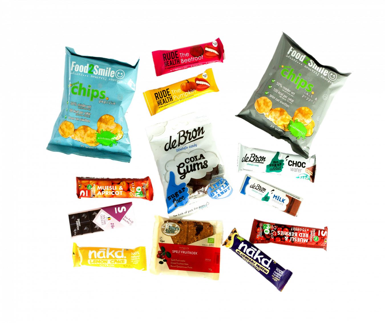Wij hebben de snacks geselecteerd in samenwerking met De Healthy Snackbox. De meeste snacks zijn: