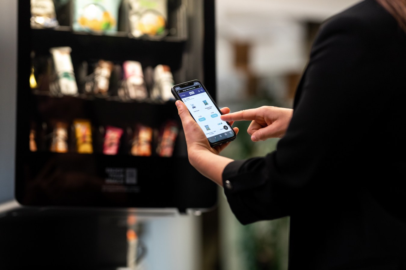 Stap 2: Bekijk het productassortiment en kies de snack waar je op dat moment zin in hebt. Reken vervolgens eenvoudig en veilig af via iDeal op je telefoon.
